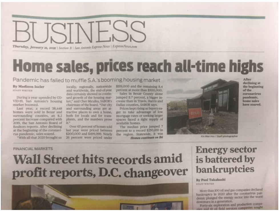 Article sur le faible impact du covid sur le marché de l’immobilier paru dans le journal Business du 21 Janvier 2021.